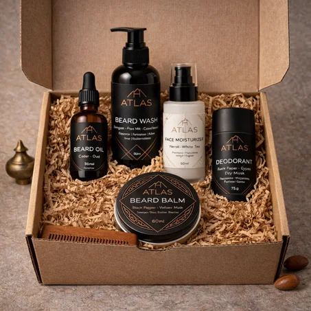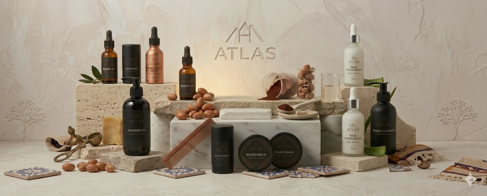 Born in the Atlas Mountains of Morocco, argan oil has long been valued for its nourishing and restorative properties. At ATLAS, we honor this heritage by crafting grooming essentials rooted in purity, tradition, and the strength of nature.وُلد زيت الأركان في جبال الأطلس بالمغرب، حيث عُرف منذ قرون بخصائصه المغذية والطبيعية. في ATLAS نحتفي بهذا الإرث من خلال ابتكار منتجات عناية مستوحاة من النقاء والتقاليد وقوة الطبيعة.